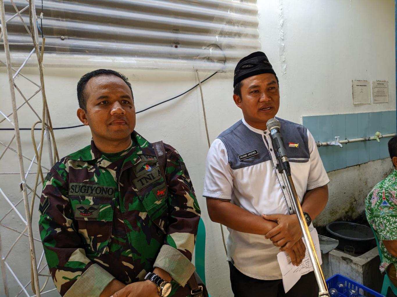 Soragan (30/10) Lurah Desa Ngestiharjo Fathoni Aribowo memberikan sambutan dalam upacara Pemberangkatan Jenazah Bapak Kol. Inf (Purn) H. Wawan Gunawan Pedukuhan Soragan.