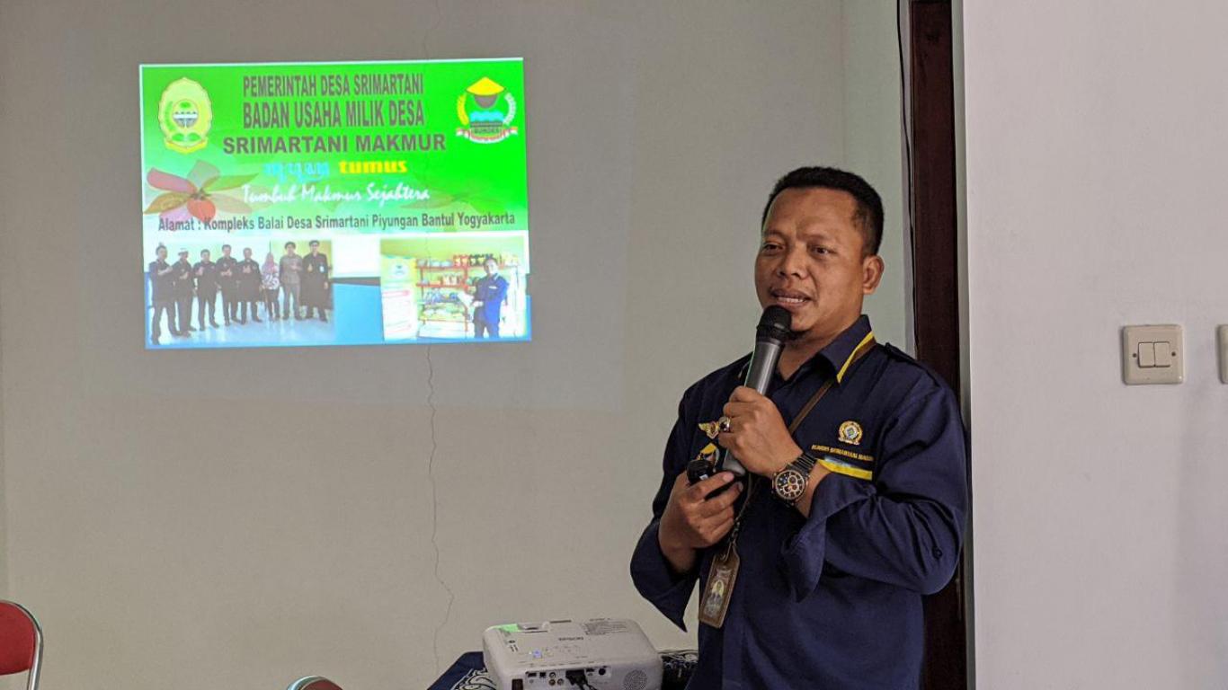 Bertempat di BUMDes Srimartani, Ketua BUMDes Srimartani Edi Risdiyanto, S.T. memberikan sambutan kepada rombongan serta memaparkan mengenai potensi dari BUMDes Desa Srimartani. Ada 4 kegiatan yang ada di BUMDes tersebut antara lain Pasar Desa, sampah, air bersih, UMKM. Pada akhir acara di lanjutkan dengan sesi tanya jawab.