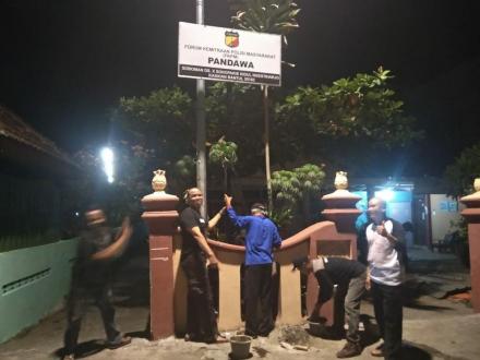 Soboman (5/11) FKPM pandawa Desa Ngestiharjo didampingi Bhabinkamtibmas Polsek Kasihan bripka. Budi Sunaryo, SH melakukan pemasangan papan nama FKPM yang berlokasi di sekretariat FKPM Pandawa di Soboman RT 07, Pedukuhan X Sonopakis Kidul. pemasangan papan nama ini diharapkan mampu memberikan identitas tersendiri bagi FKPM Pandawa yang saat ini beranggotakan 28 personil yang diambil dari 12 Pedukuhan yang ada di Desa Ngestiharjo.