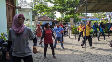 Senam Rutin Forkompincam di Halaman Kantor Desa Bangunjiwo