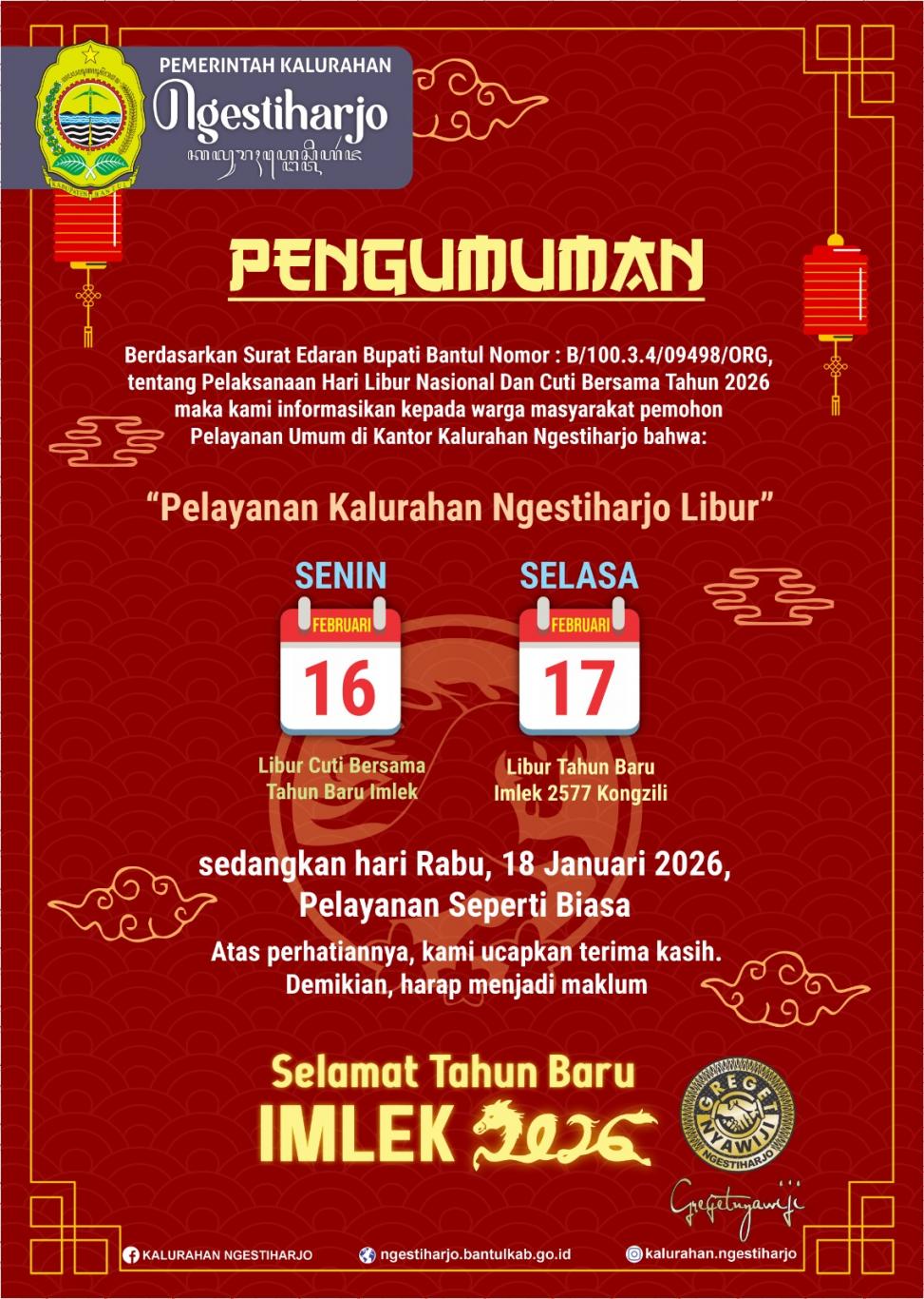 Pengumuman Libur Tahun Baru Imlek 2026
